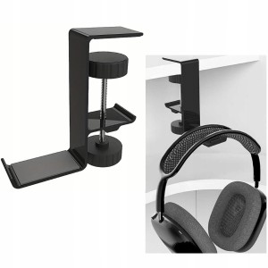 Uchwyt na Słuchawki Metalowy, Przykręcany do Biurka - Czarny