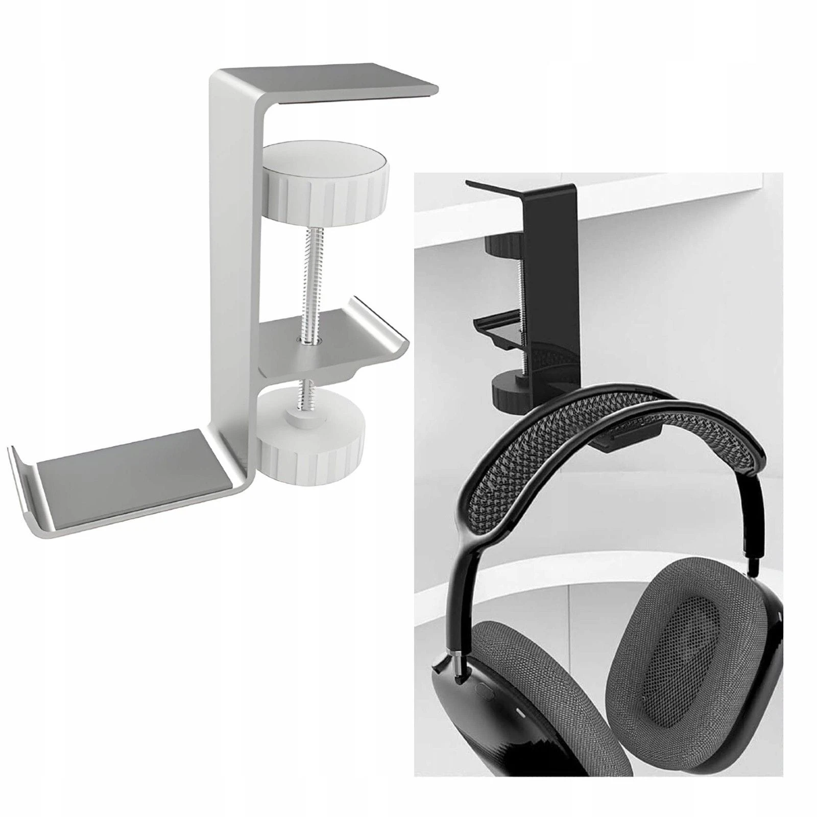 Metalowy Uchwyt na Słuchawki Przykręcany do Biurka - Srebrny