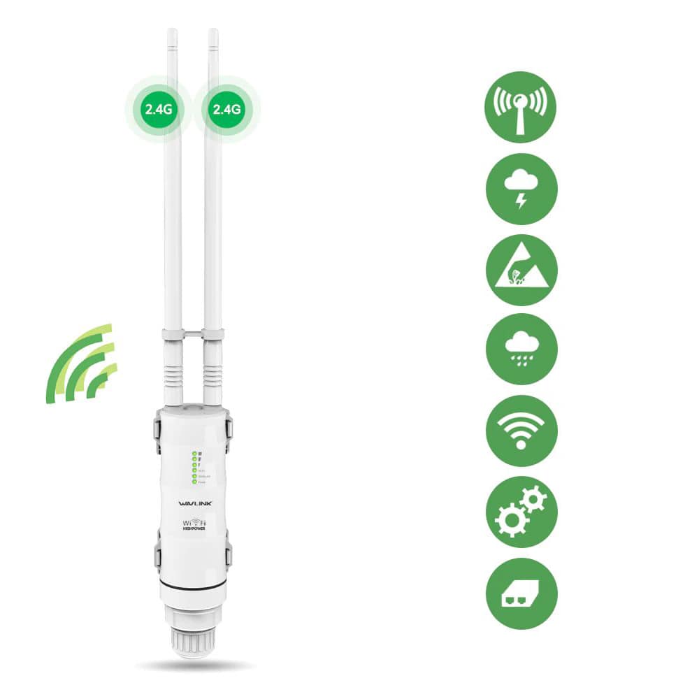 Repeater zewnętrzny Wavlink to świetne rozwiązanie dla przedłużenia zasięgu sieci Wi-Fi na znacznym obszarze (do 200 metrów).
