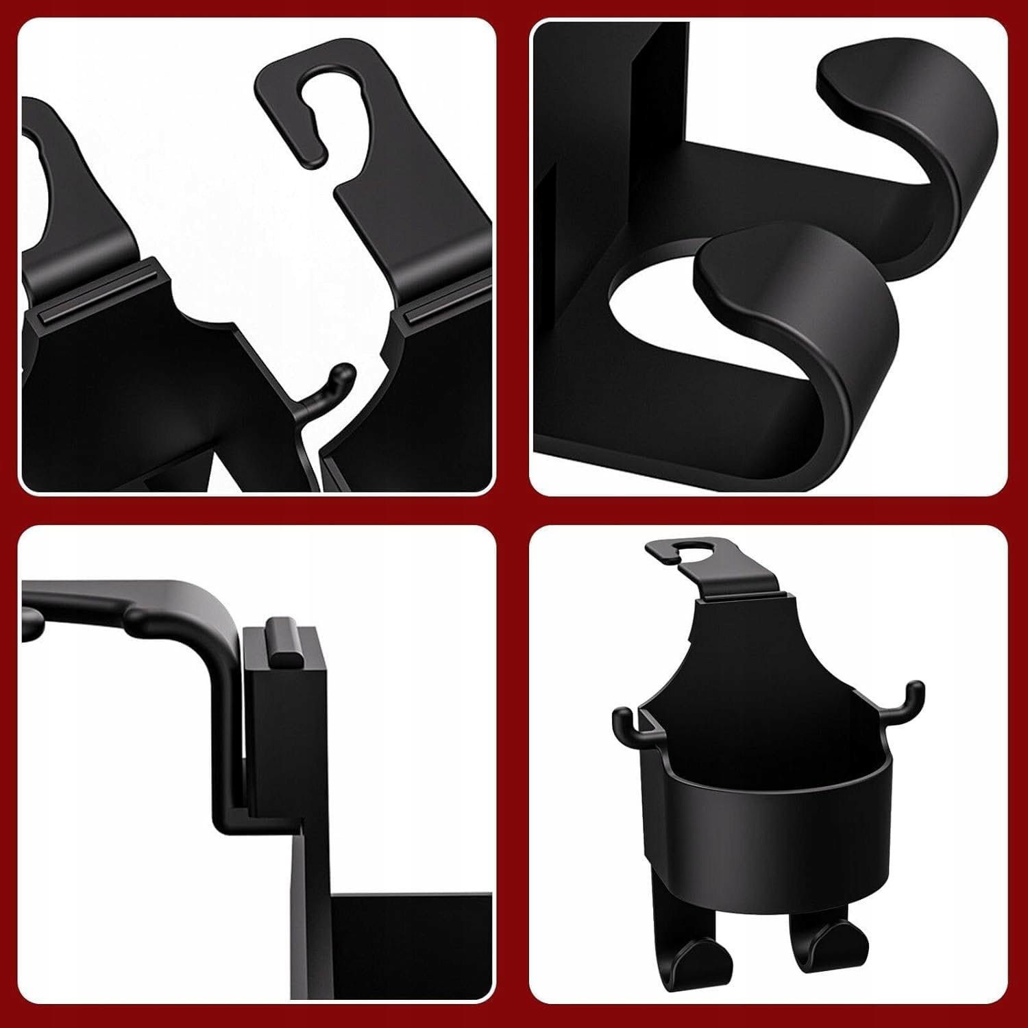 Montaż i demontaż są proste i nie wymagają demontażu zagłówka. Zestaw zawiera jeden uchwyt na kubek z dwoma haczykami: długim i krótkim, co zapewnia wszechstronność i wygodę użytkowania.