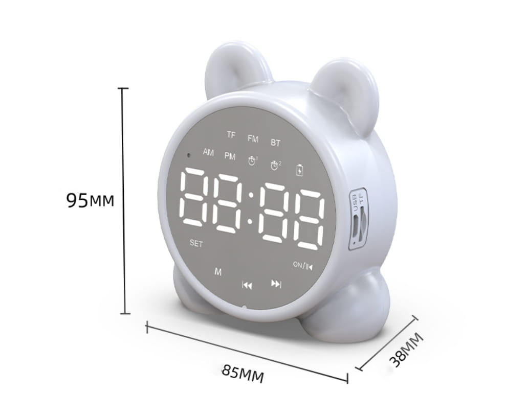 Producent Smart-TelZegar Budzik LED "Kotek" Multifunkcyjny - Radio FM, Głośnik Bluetooth, Lusterko - Biały