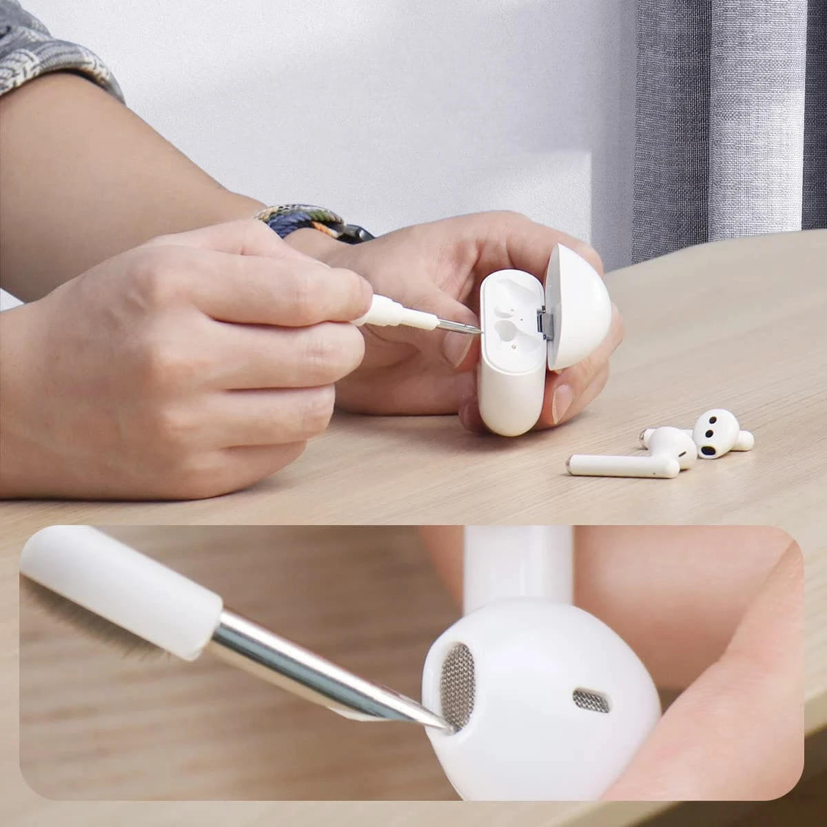 Praktyczny i wszechstronny zestaw narzędzi do utrzymania Twoich AirPods w czystości.