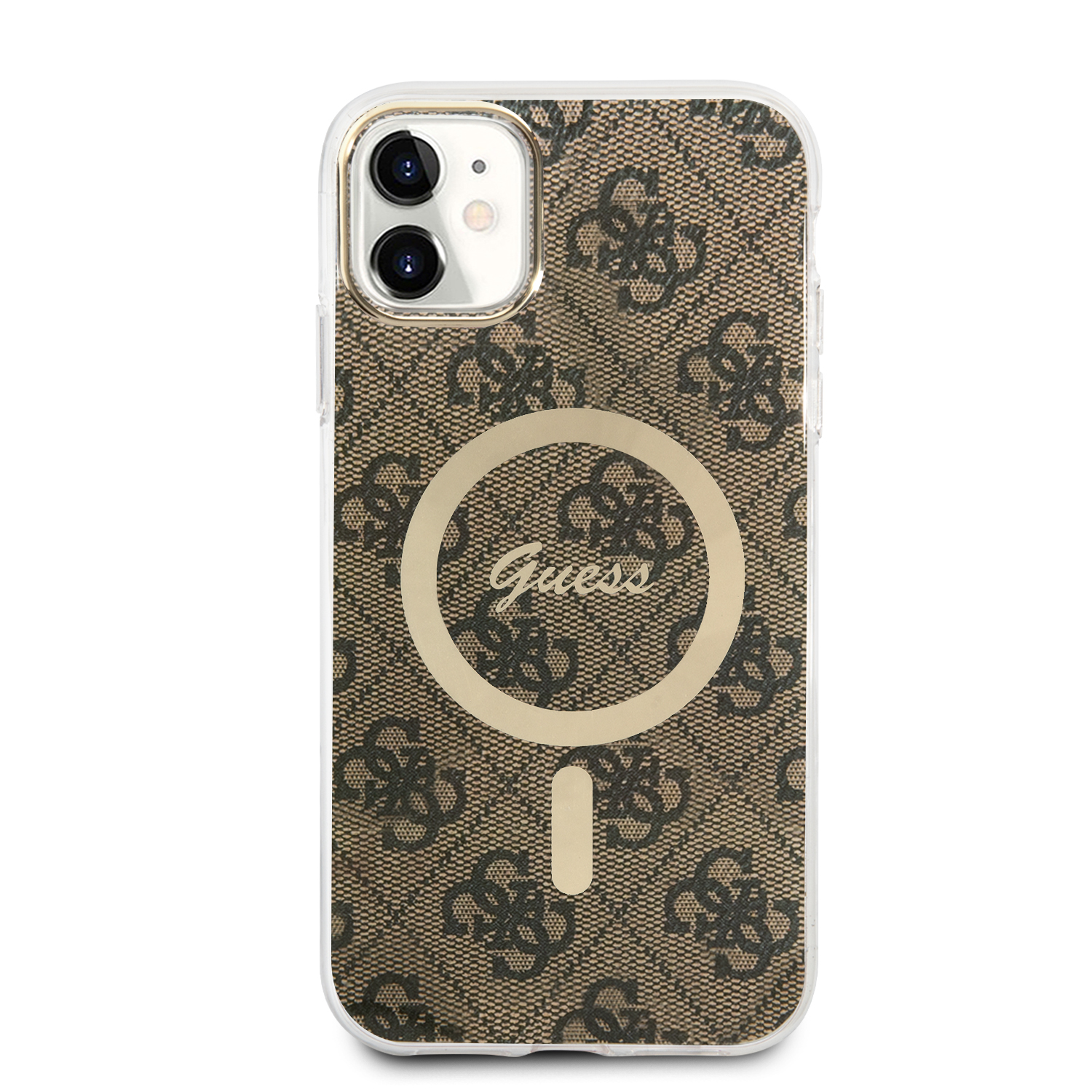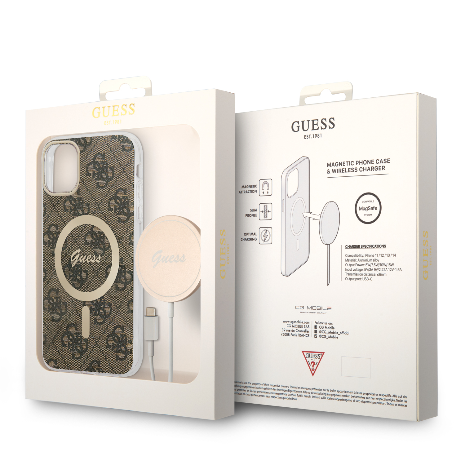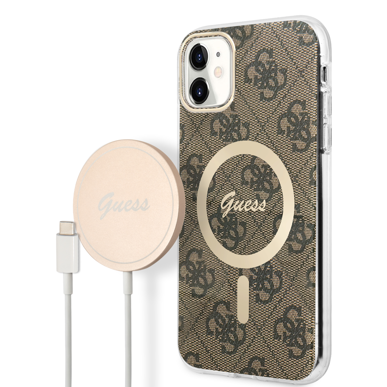 Zestaw Guess etui + ładowarka bezprzewodowa GUBPN61H4EACSW Apple iPhone 11 brązowy/brown hard case 4G Print MagSafe