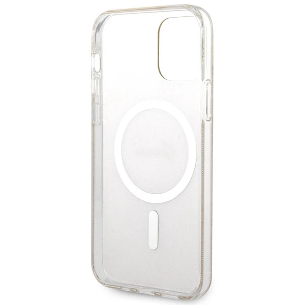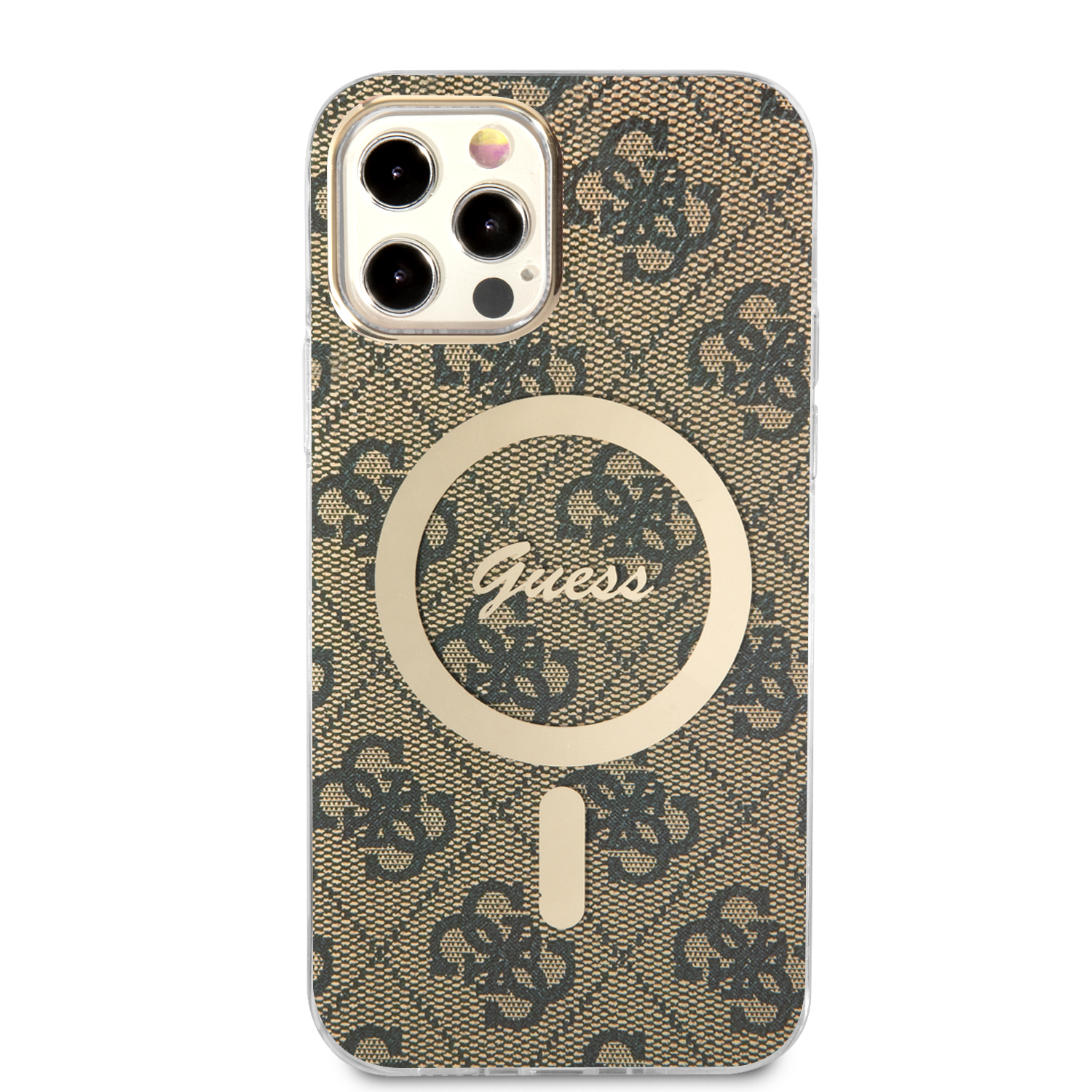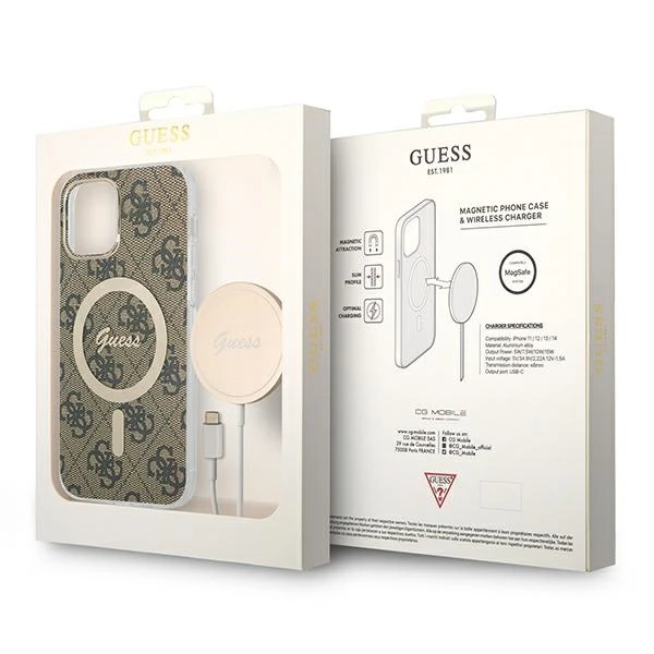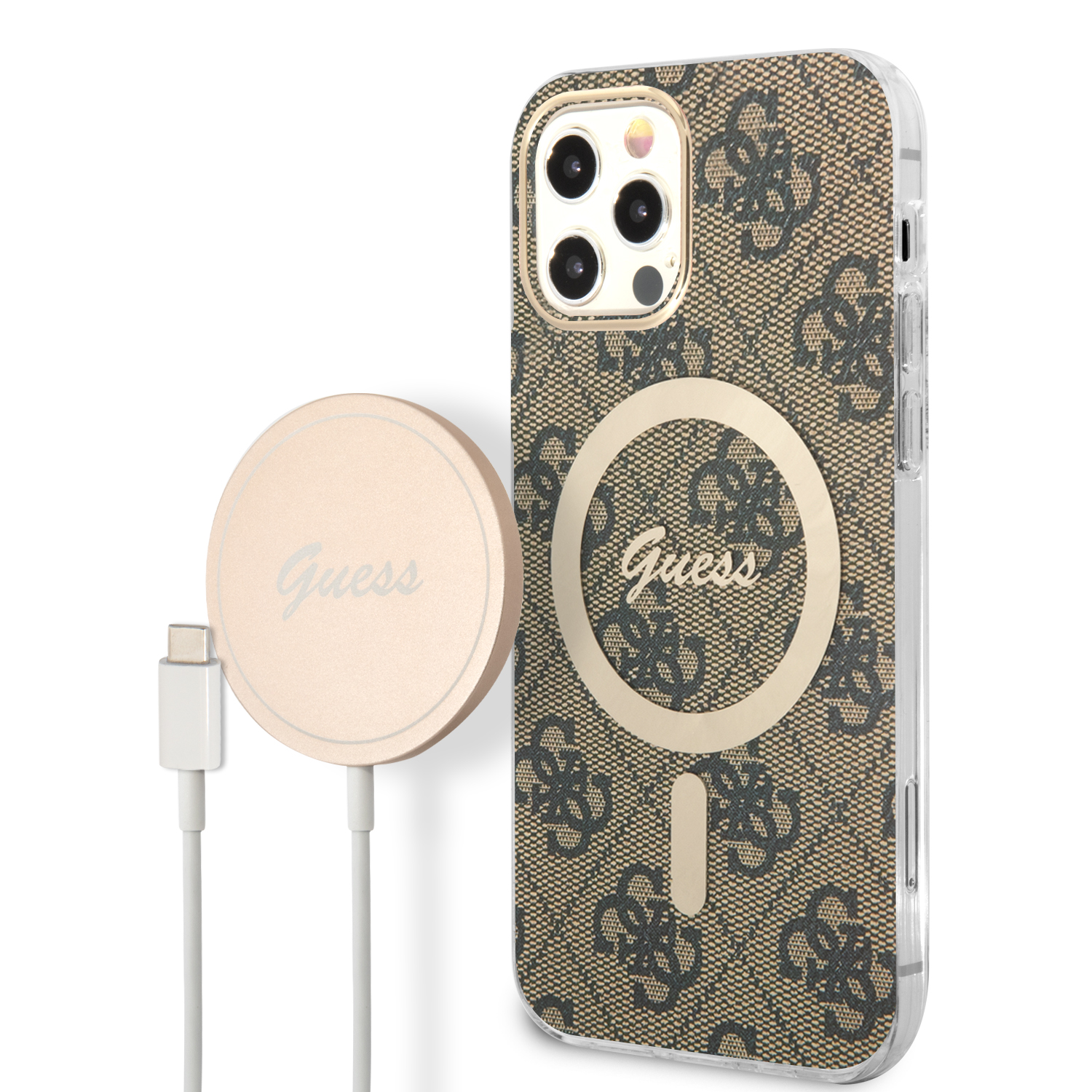 Zestaw Guess etui + ładowarka bezprzewodowa GUBPP12MH4EACSW Apple iPhone 12/12 Pro brązowy/brown hard case 4G Print MagSafe